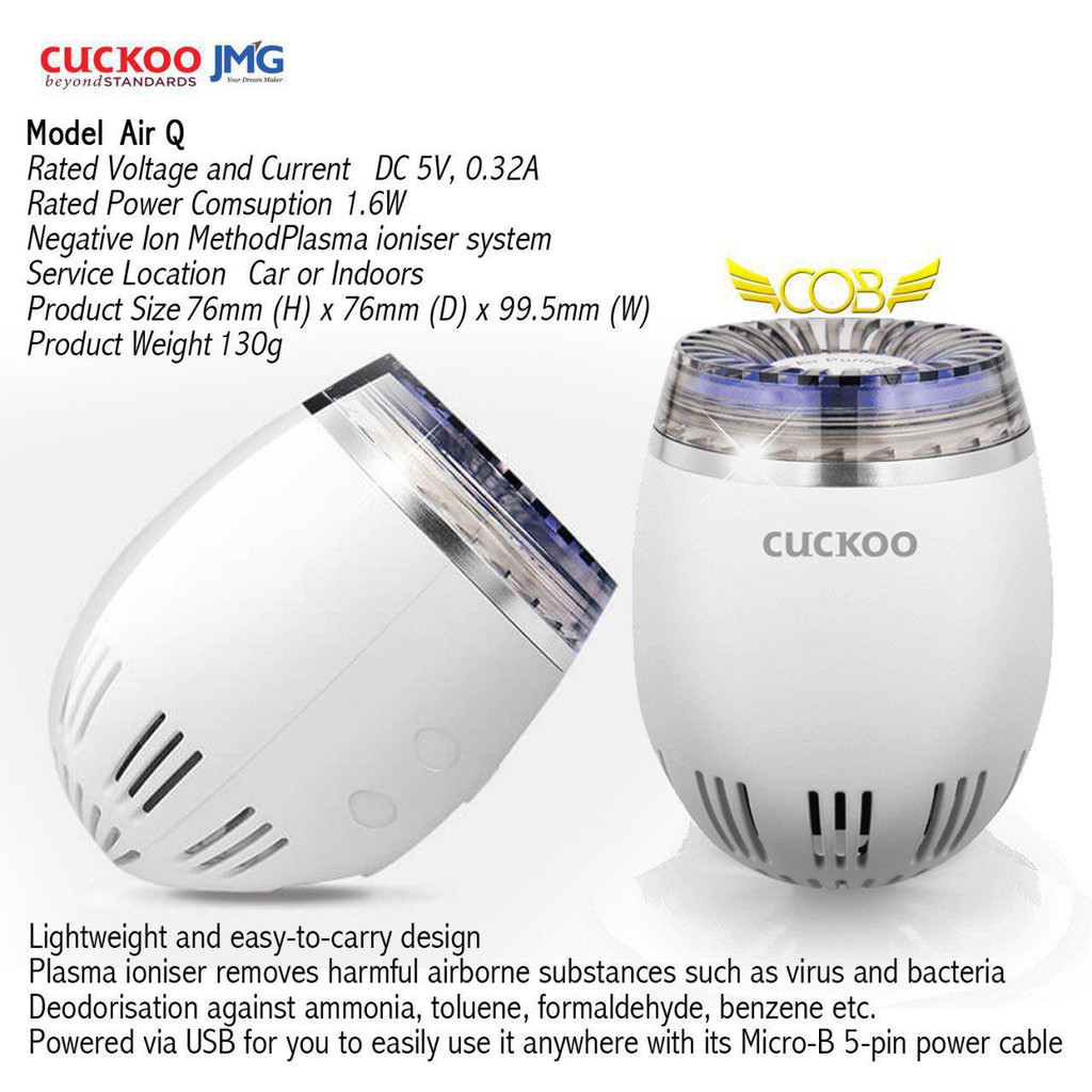 Air Q Portable Car Air Purifier Cuckoo Malaysia Official
