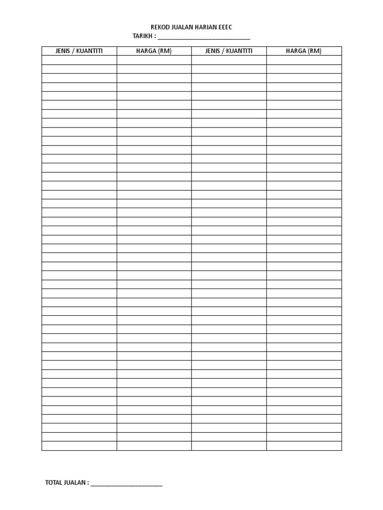 Format Contoh Rekod Jualan Harian