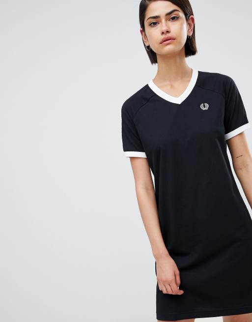 Fred Perry V Neck Ringer T Shirt Dress With Logo Tape Asos
