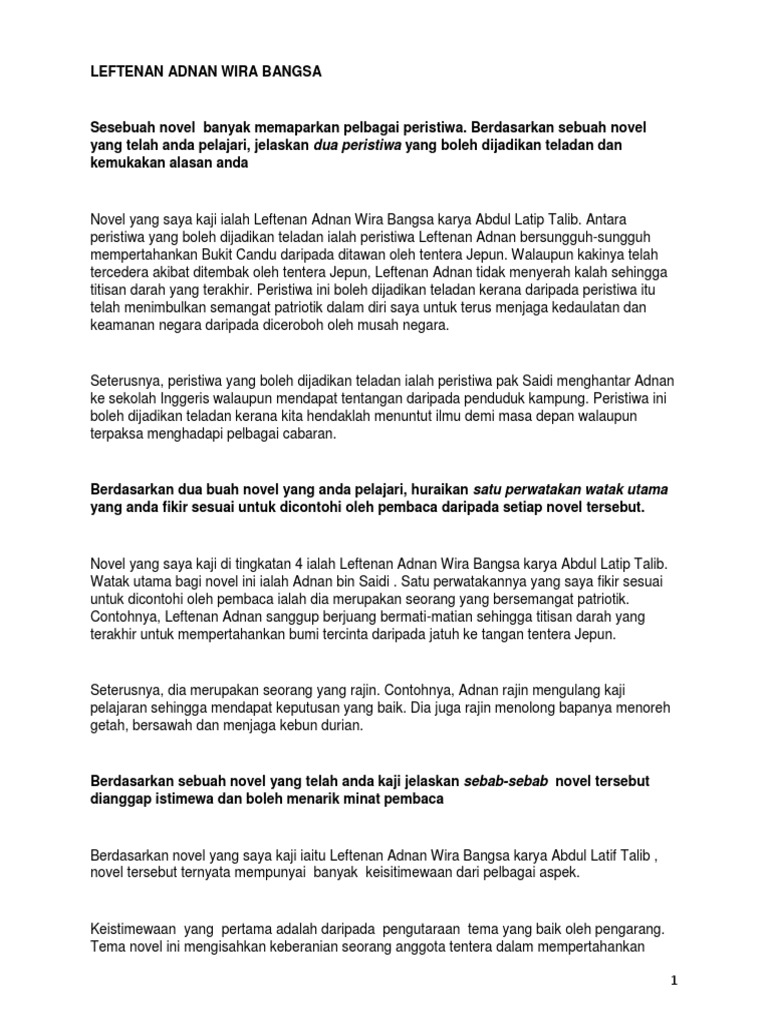 Nota Penuh Novel Leftenan Adnan Wira Bangsa