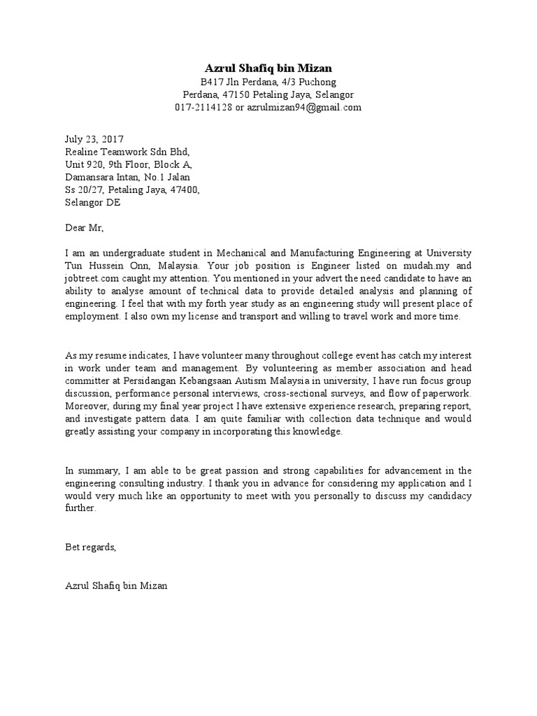 Cover Letter Realine