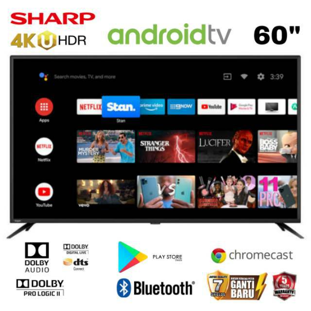 Sharp Uhd 4k Android Tv 60 4t C60al1x Bluetooth Wifi Digital