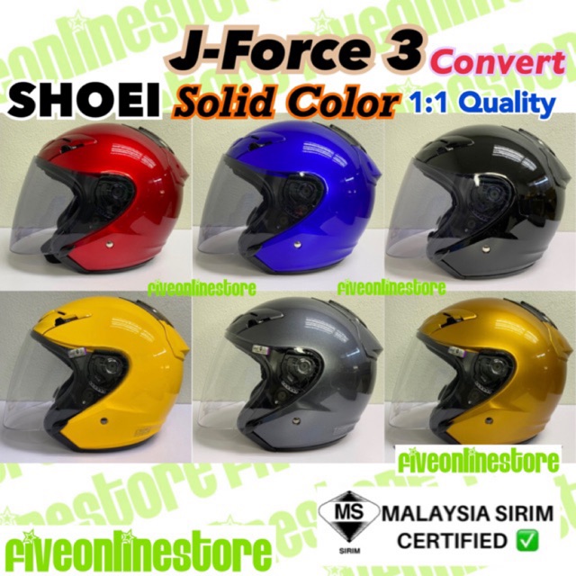 Shoei J Force 3 Jf3 Convert Solid Color Sirim Open Face Helmet J