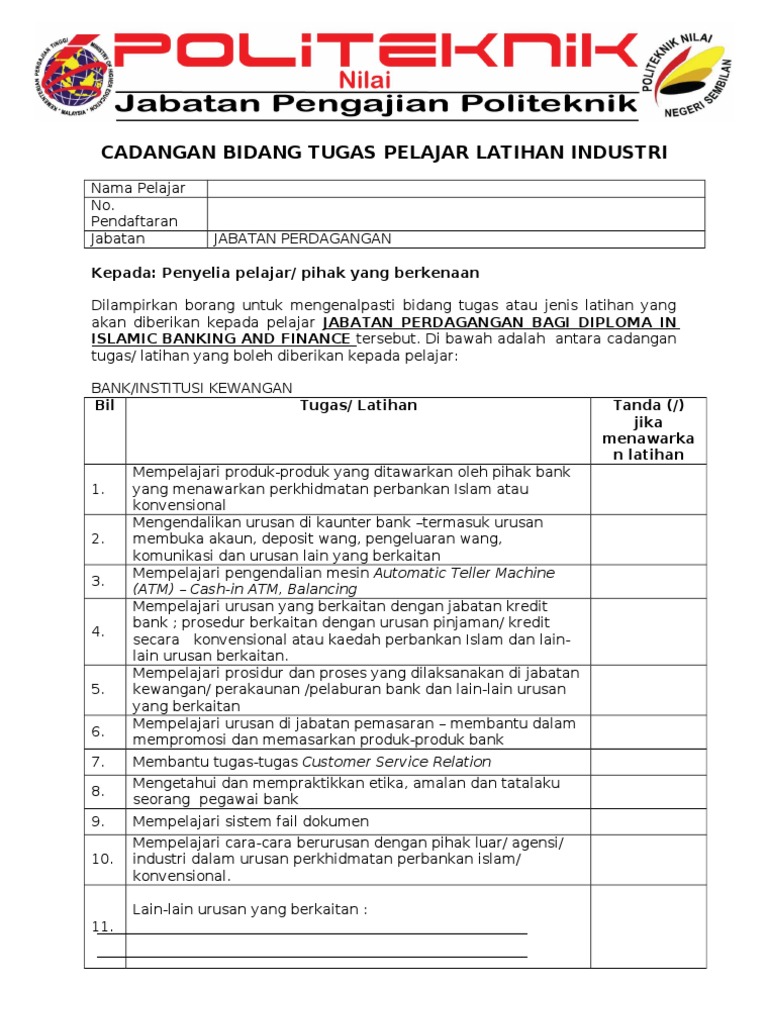 Laporan Penuh Latihan Industri Pelajar Politeknik Perdagangan